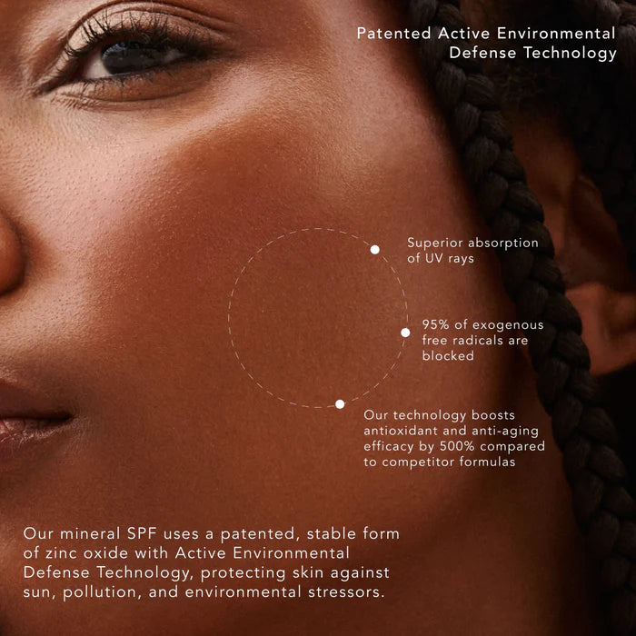 Daily Defense Moisturizer Mineral SPF 60 combines broad-spectrum mineral sun protection with nourishing antioxidants. Powered by EcoSun Complex®, it shields against UV, pollution, infrared, and blue light. The lightweight formula goes on white then seamlessly melts into skin, delivering up to 80 minutes of water resistance. Silicone-free and perfect for everyday defense.